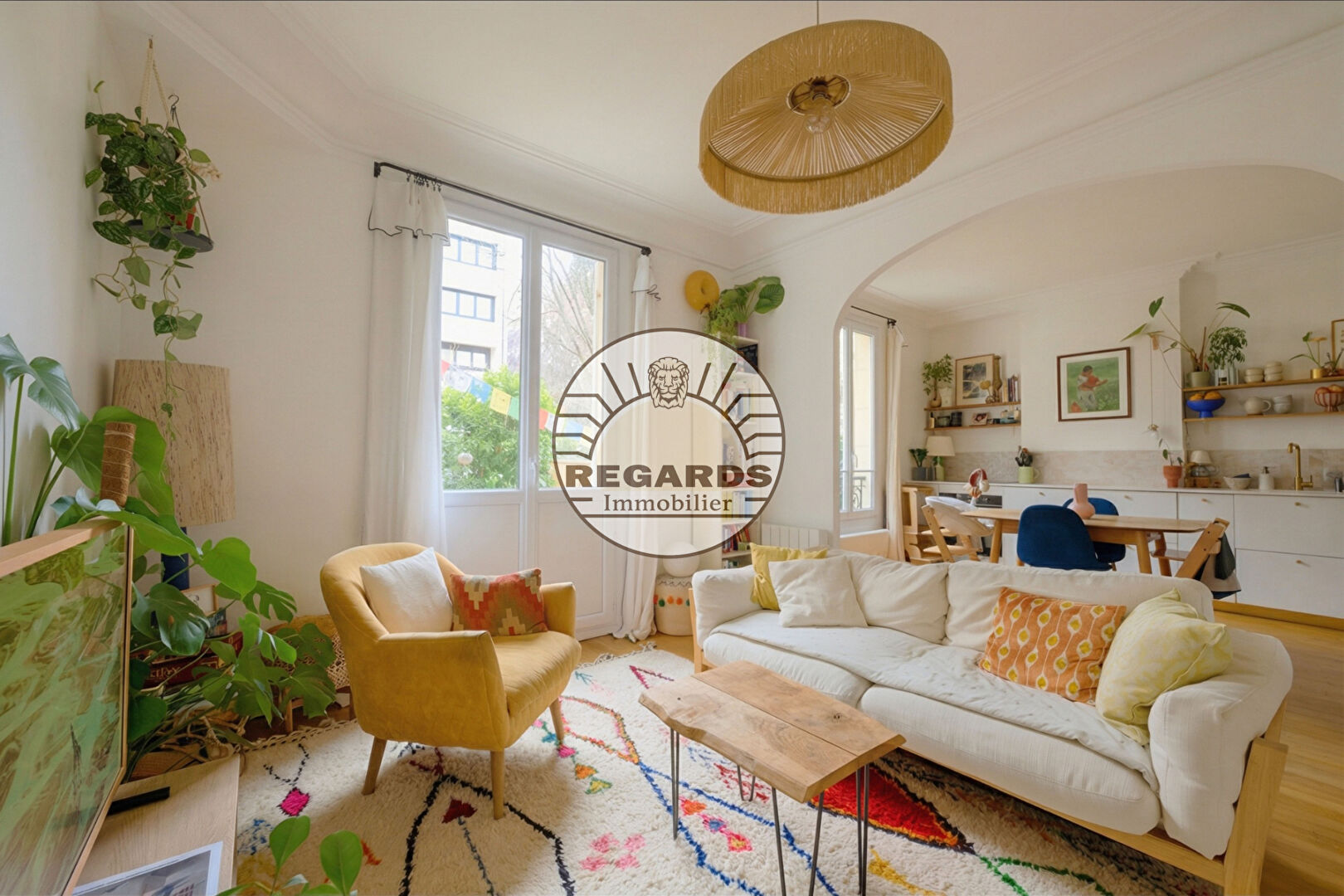 VERDIER-REPUBLIQUE : Au rez-de-jardin d’un bel immeuble ancien, magnifique 3 pièces de 50m² habitable avec terrasse et jardin de 44m² comprenant : Une entrée, un vaste séjour parqueté avec cuisine ouverte d’une superficie de 26m² ouvrant sur jardin privatif d’environ 37m², une grande chambre avec placard, une seconde chambre pouvant faire office de bureau ou chambre d’enfant et une salle d’eau avec WC. Appartement intégralement refait à neuf il y à 3 ans. Double exposition Nord-Sud. Calme et ensoleillé. Chambres sur jardin. Double vitrage dans chaque pièce. Charme de l’ancien ( parquet / moulure / belle hauteur sous plafond). Possibilité de créer une 3ème chambre. Appartement au pied des commerces et à deux pas du métro mairie de Montrouge. Une cave en sous-sol et un débarras complètent ce bien. Coup de coeur garanti.