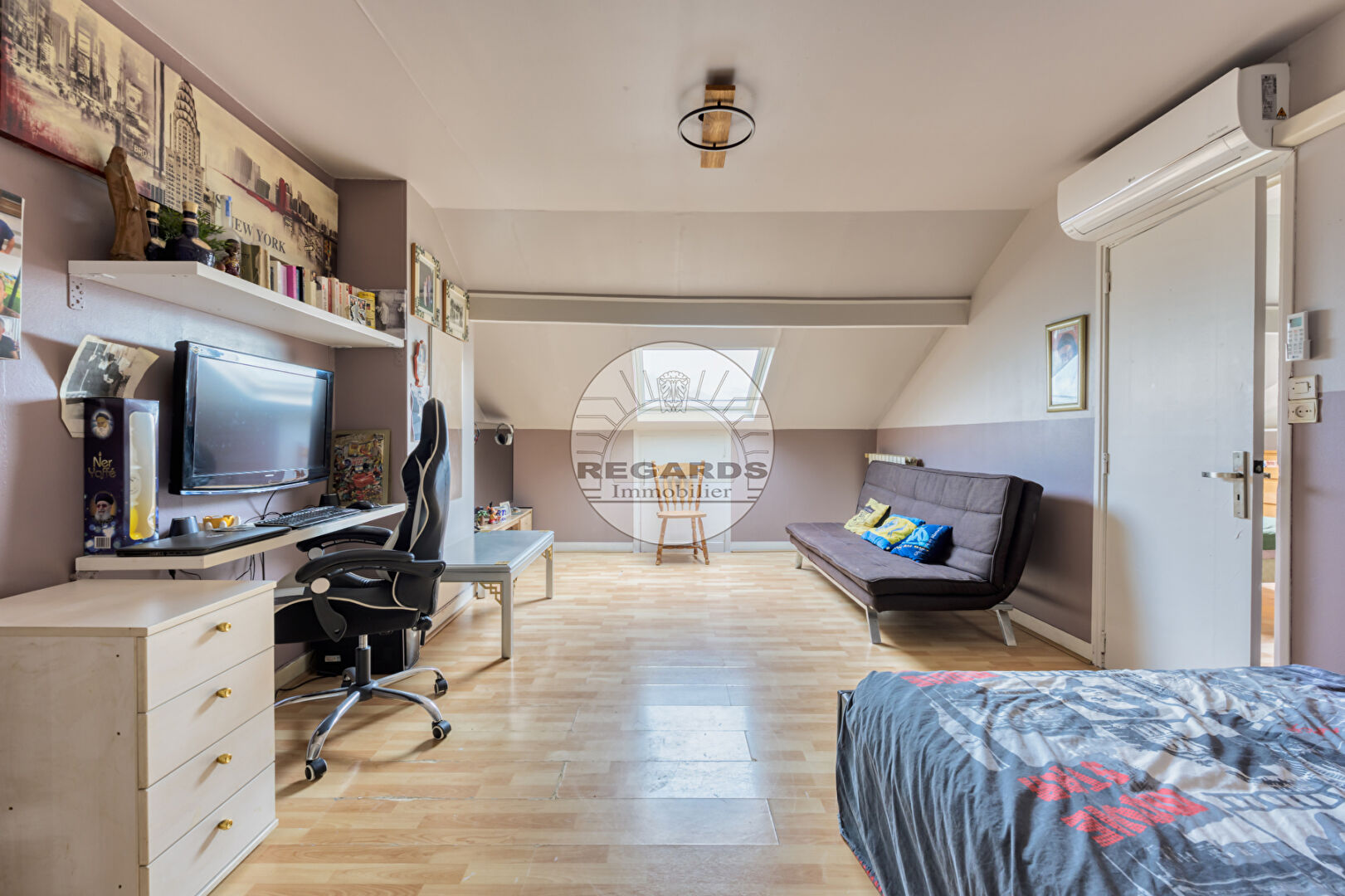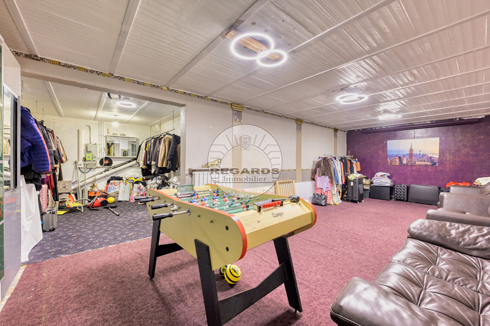 Au rez de chaussée : Une entrée, un espace buanderie et une grande salle de jeux de 44m² .